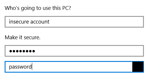 After creating the account, we set a password. For the sake of this demonstration, the username was “insecureaccount” and the password was “password!”